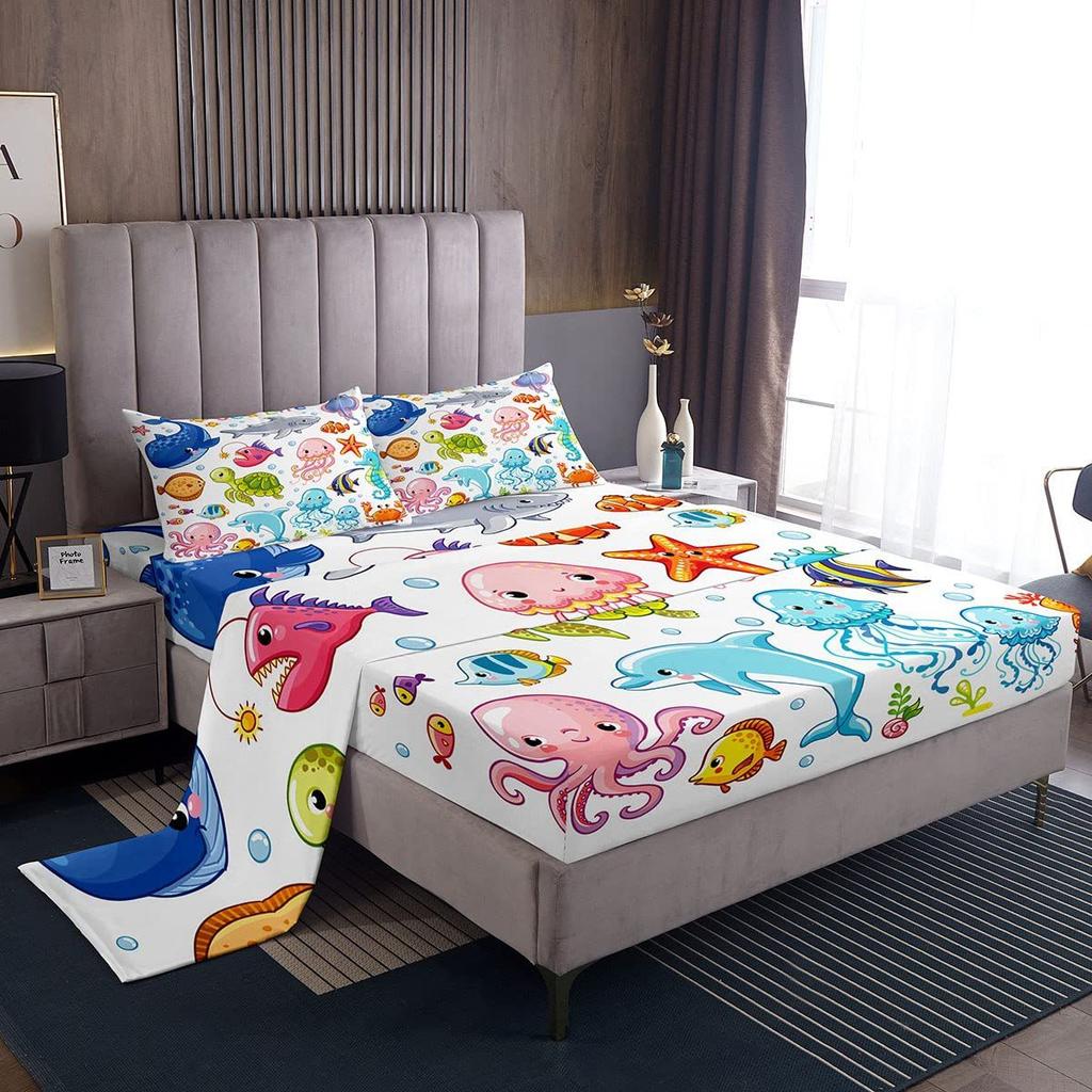 Ocean Submarine Creature Pattern Mattress Four-Piece Bedding Set Bedroom Dormitory Bedding Decoration