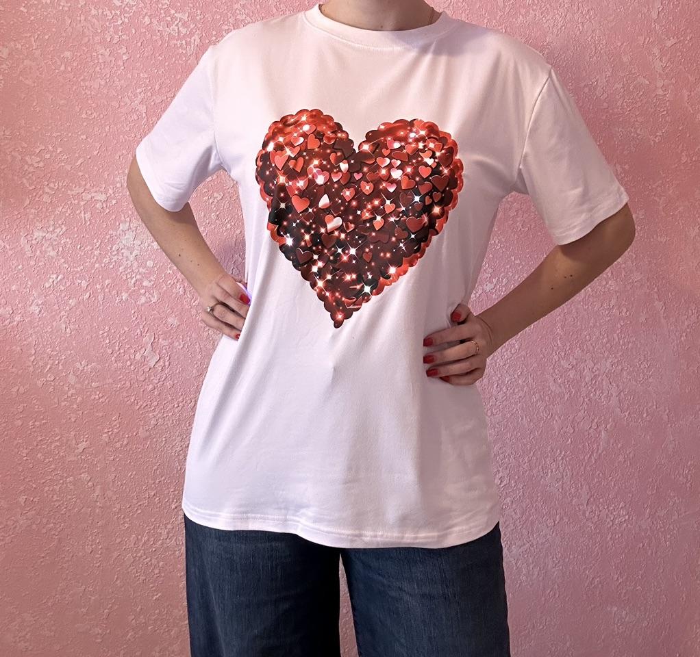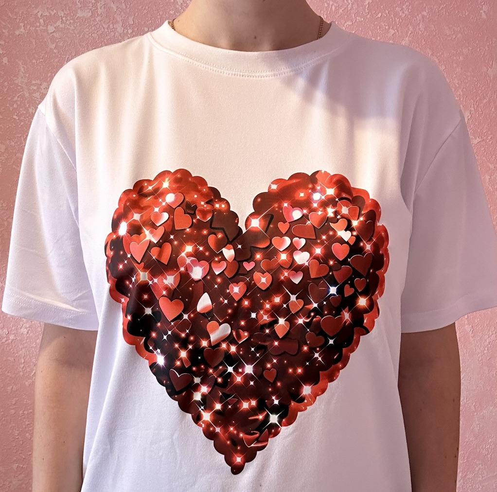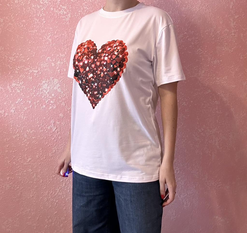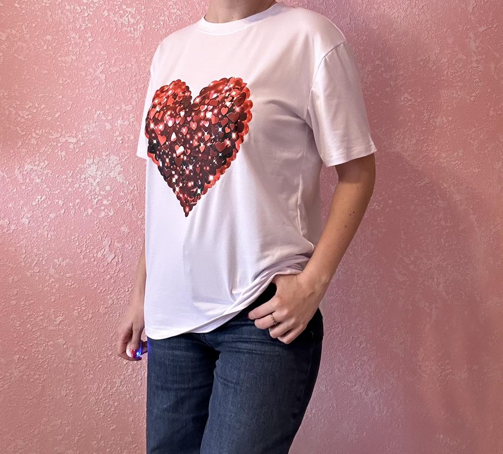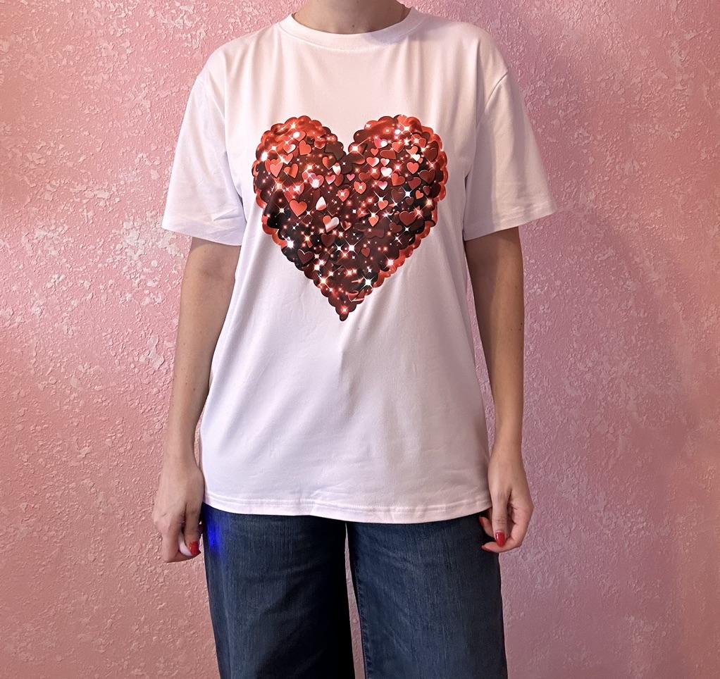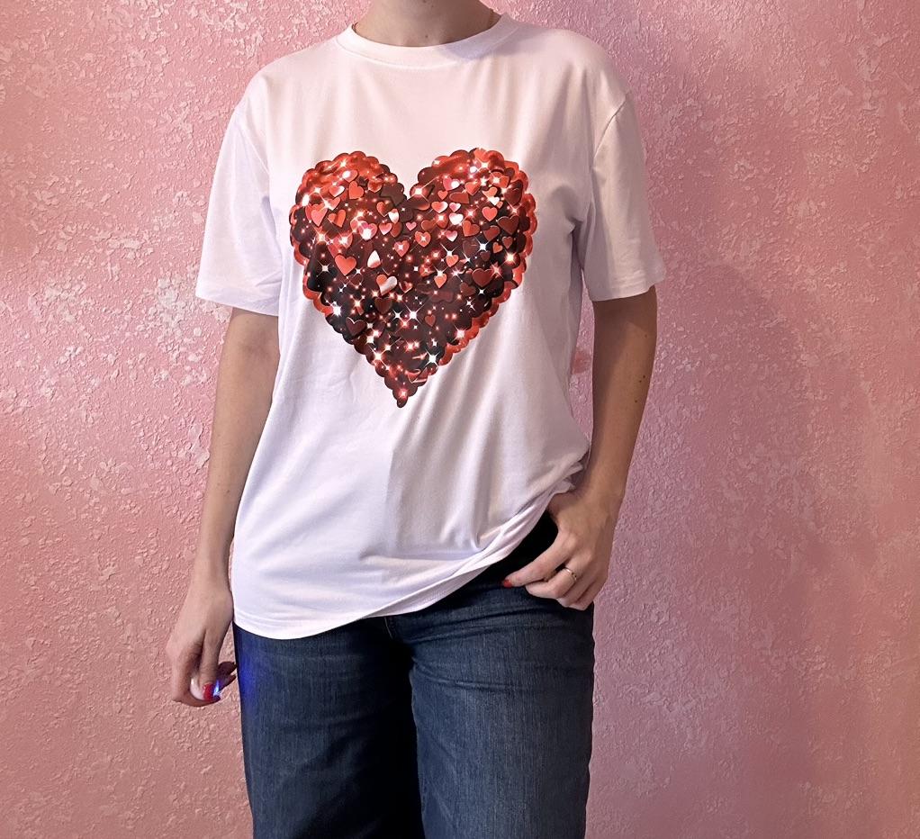 Black Oversized T Shirt With Red Sequin Heart Print For Casual Wear And Party Outfits