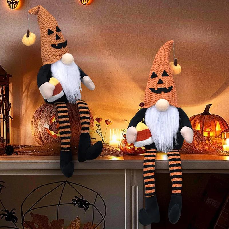 Halloween Long Legs Faceless Doll Dwarf Broom Goblin Doll Creative Ornament Sharp Trick or Treat Hat Plush Gift