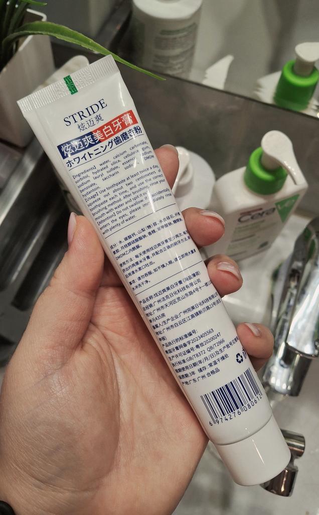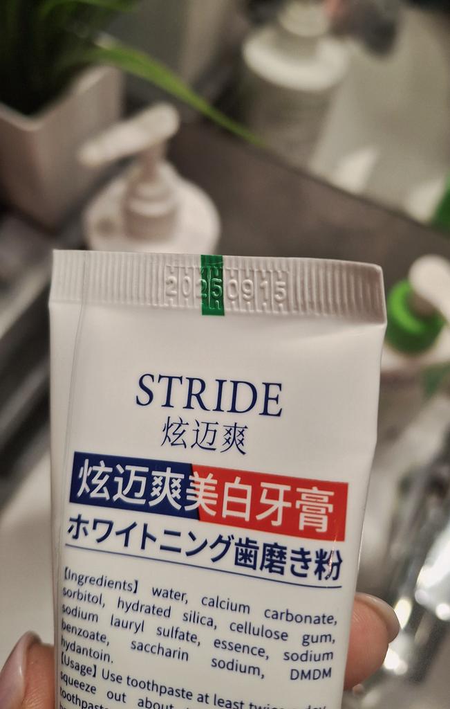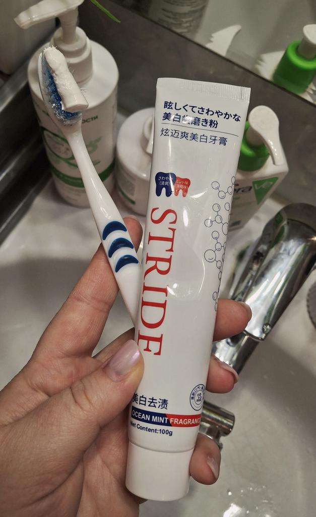 Stride Whitening Toothpaste (Japan) Japanese dental aesthetics: effectiveness and protection Japanese oral hygiene products are famous for not being excessively abrasive, focusing more on the chemical removal of stains and enamel repair rather than aggressive "scrubbing". ✨ Main Features Stride toothpaste stands out for a formula that aims to restore the natural whiteness of teeth without causing the classic sensitivity from chemical whitening. • Stain-Removing Technology: Uses agents that dissolve surface stains (coffee, tea, nicotine) by acting on the protein bonds that fix them to the enamel. • Protective Action: In addition to whitening, it creates a barrier that prevents new pigments from fixing immediately. • Taste and Texture: Unlike Western products that are often very "mentholated" and spicy, Stride usually has a very fine, clean, and persistent mint flavor, with a dense but not excessive foam. 🦷 Results on Teeth 1. Natural Whitening: Don't expect an immediate "bleach" effect (which often damages the enamel), but a return to the natural brightness of the tooth already after the first week. 2. Sensation of Cleanliness: The surface of the teeth feels extremely smooth to the touch with the tongue, a sign of effective plaque removal. 3. Zero Sensitivity: It's perfect for those with sensitive teeth but don't want to give up a brighter smile. 📦 Logistics and Shipping A remarkable strength was the delivery time. • Origin: Japan. • Arrival time: 15 days. • Assessment: Receiving a product from Japan in just two weeks in Italy is an excellent result. Usually transoceanic shipments can take up to a month; 15 days indicate premium logistics management and a smooth customs clearance. 📝 Final Considerations The strong point: The ability to polish and brighten without minimally damaging the enamel or irritating the gums. Who I recommend it to: To those who consume a lot of coffee or tea and are looking for a high-quality daily product that is superior to common supermarket toothpastes.