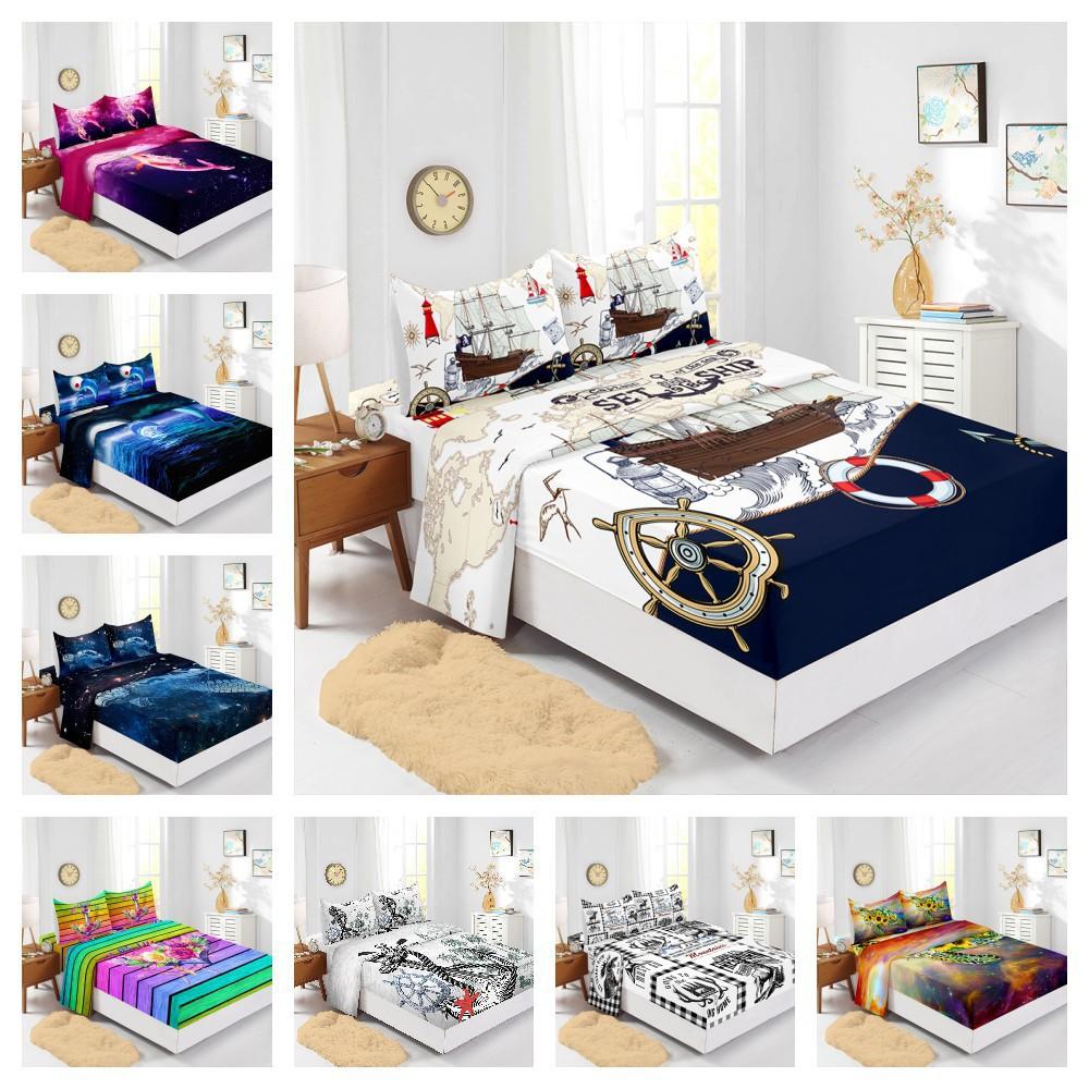 Four-Piece Mattress Set Ocean Dolphin Turtle 3D Digital Printing Kit Mattress Protective Cover