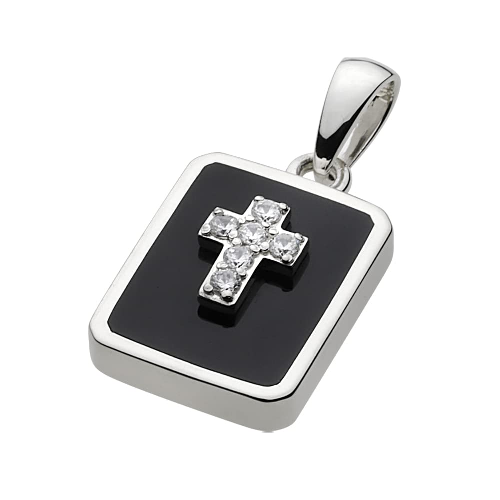 Figmart Cross Stone Pendant with Zirconia and Onyx [Silver Accessory] Fp0180