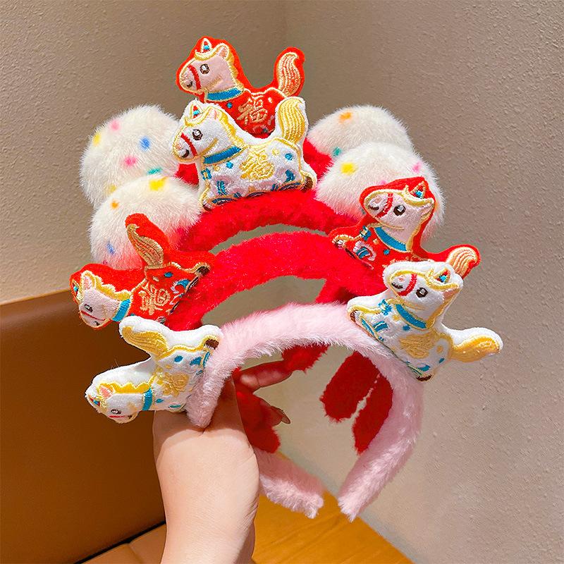 Children's Plush Headband, Festive and Cute Little Pony Hair Accessory for New Year, Photo Props, Baby Celebration Cute Item