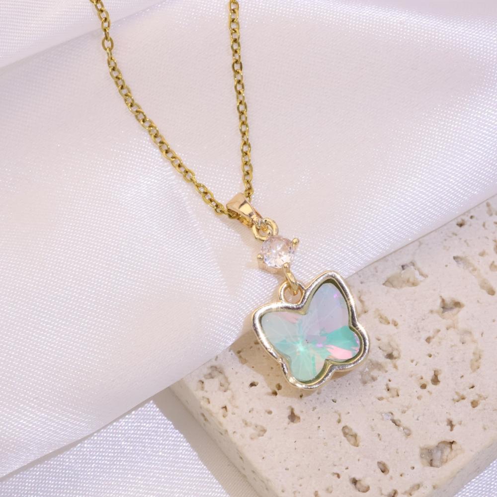 Fashion Artificial Crystal Butterfly Pendant Necklaces for Women Zirconia Necklace Wedding Party Jewelry Accessories