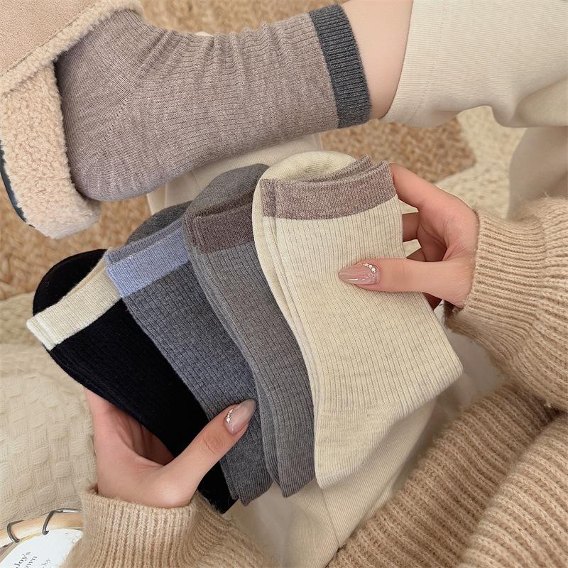 Autumn and Winter Women's Mid-calf Socks, Winter Thickened Warm Cashmere Socks, College-style Color-blocked Wool Socks