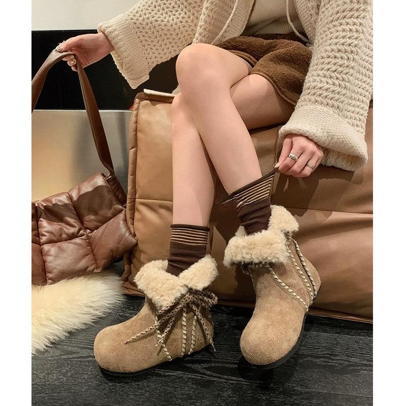 Leather Fluffy Snow Boots Women's Cotton Shoes Winter New Thick-soled Big-head Martin Boots Velvet Warm Boots