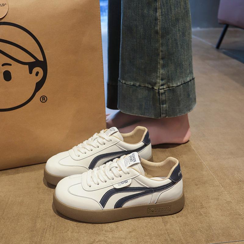 Cowhide Version Women's Leather Board Shoes Autumn New Soft-soled Casual Sports Shoes Versatile White Shoes