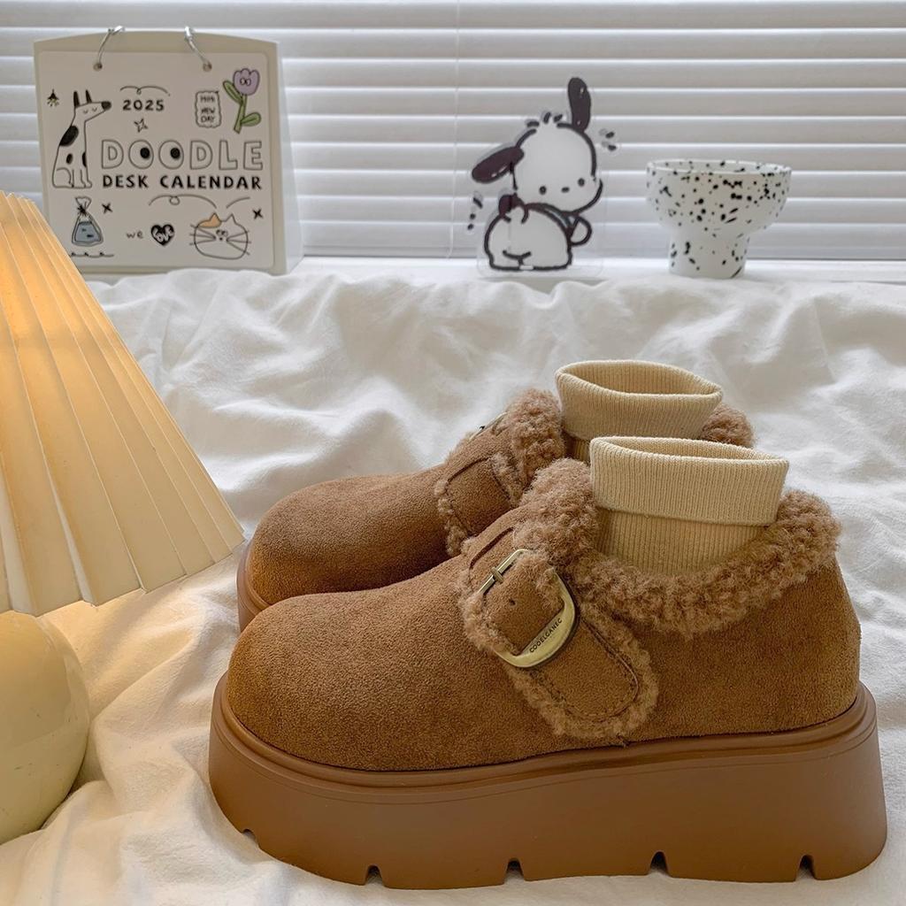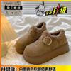 Leather Thick-soled Heightened Piled Thickened Snow Boots Women's Autumn and Winter New Warm Fluffy Cotton Shoes