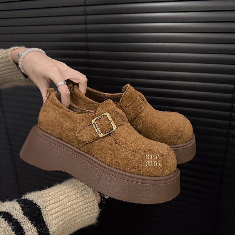 Muffin Thick-soled All-inclusive Women's Shoes Autumn New Small Height-increasing Leather Single Shoes