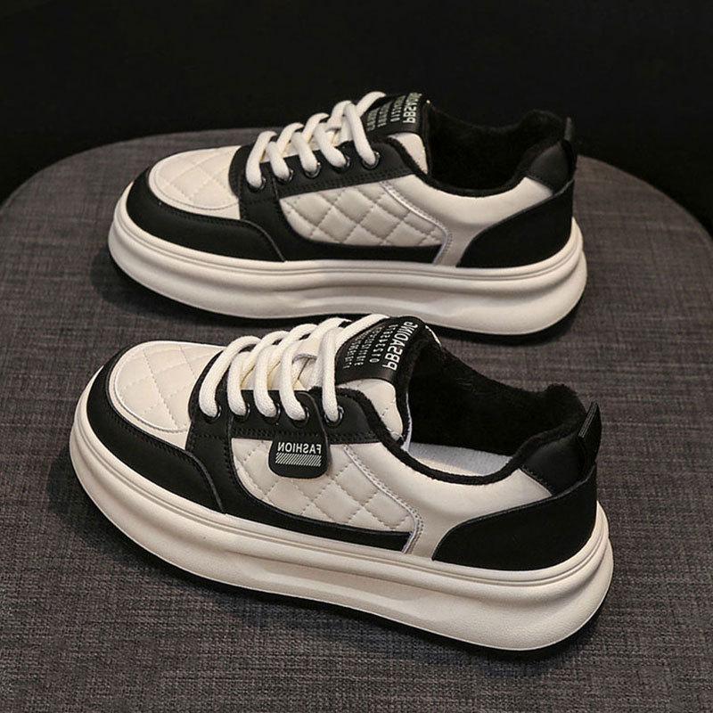 Leather Little White Shoes Women's Cotton Shoes New Autumn and Winter Versatile Platform Casual Shoes Winter Velvet Sports Board Shoes