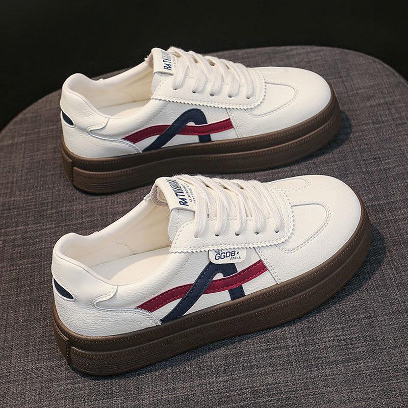 Cowhide Version~ Leather Little White Shoes Women's Autumn New Versatile Casual Board Shoes Platform Sports Sub