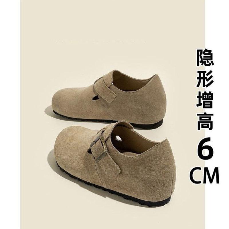 Frosted Leather Cm Height Increase Genuine Leather Women's Shoes Spring and Summer New Grandma Shoes Women's Doudou Single Shoes