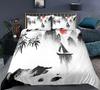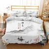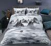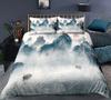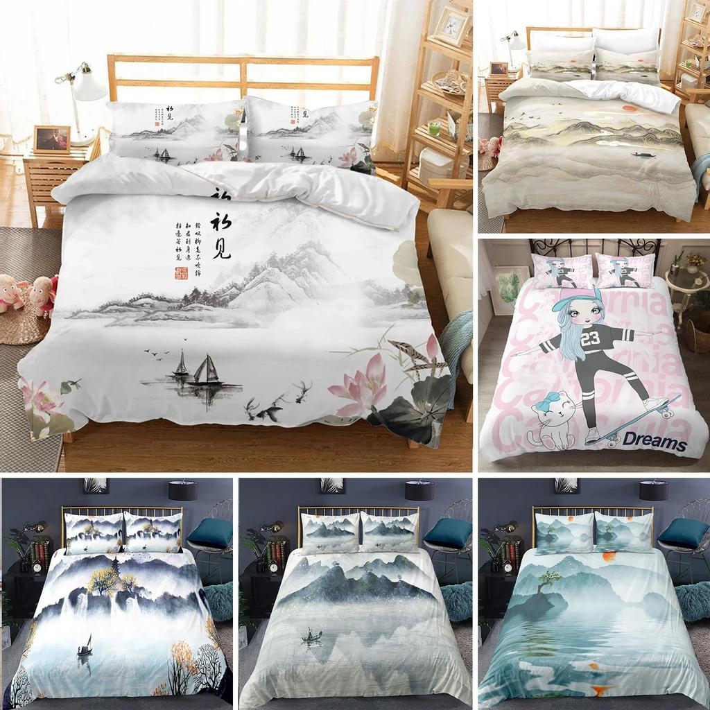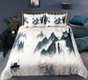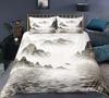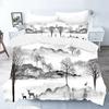 Nature Landscape Duvet Cover King/Queen Size,Chinese Ink Painting Style Bedding Set Mountain River 2/3Pcs Polyester Quilt Cover