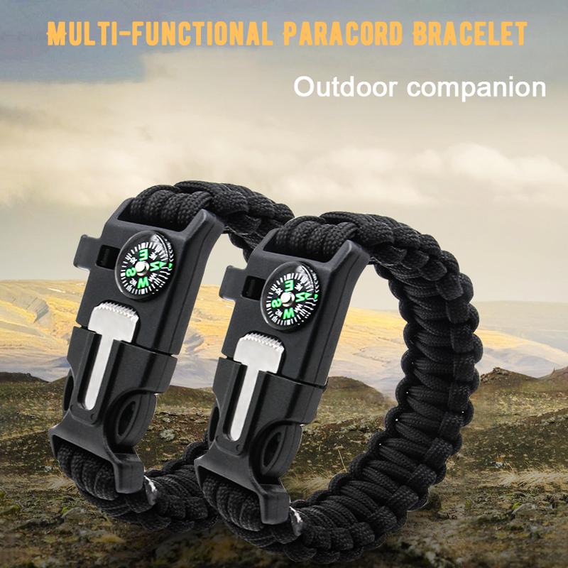 5-in-1 Multi-Function Survival Paracord Bracelet Outdoor Camping Adventure Emergency Rescue Survival Rope Bracelet Compass
