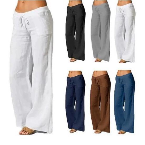 Discover the perfect blend of comfort and style with these women's high waist wide leg flared pants. Crafted from a premium mix of cotton and linen, they ensure breathability and ease for all-day wear. The high waistband accentuates your silhouette, while the wide legs create a flowing, elegant look. Complete with pockets, these pants offer practicality without sacrificing style, making them a versatile addition to your wardrobe.
