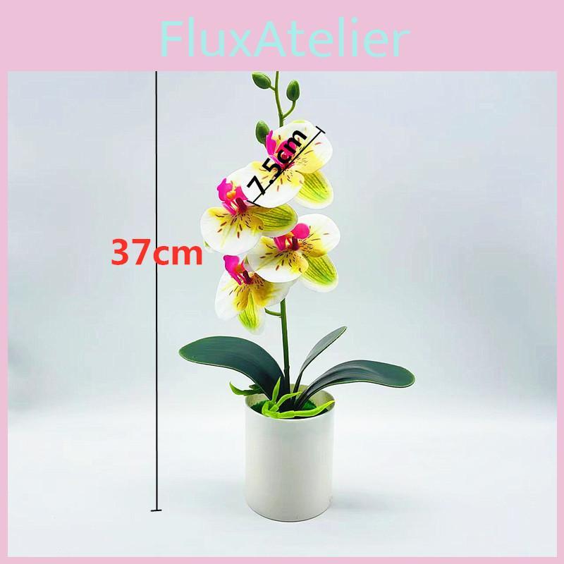 This artificial orchid plant features a 3D-printed design crafted from soft PVC material, measuring approximately 14.6 inches in height . Its realistic appearance enhances home or office decor, bringing natural beauty indoors. Ideal for desktop displays, table centerpieces, or event decorations. Wipe clean with a damp cloth for maintenance.