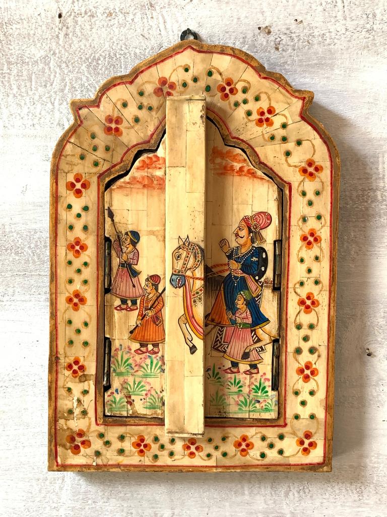 Handmade Carved Wooden Inlay Window: Painted Indian King Decor