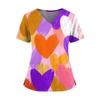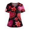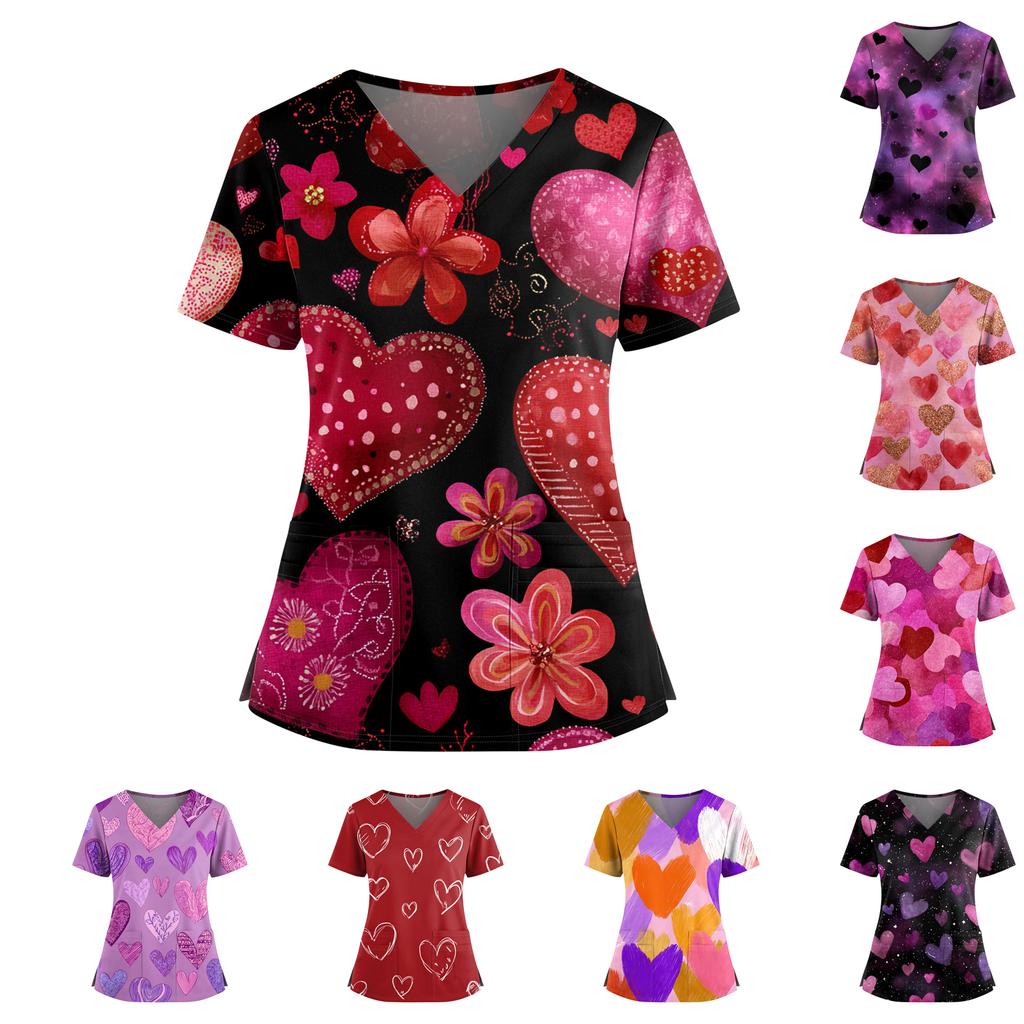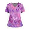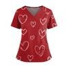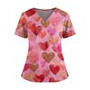 Women's Valentine's Day Printed V-Neck Double Pocket Short Sleeves Hem Slit Uniform Caregiver Top