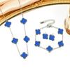 3PCS Titanium Steel Non Fading Double-sided Clover Necklace Bracelet Earring Set