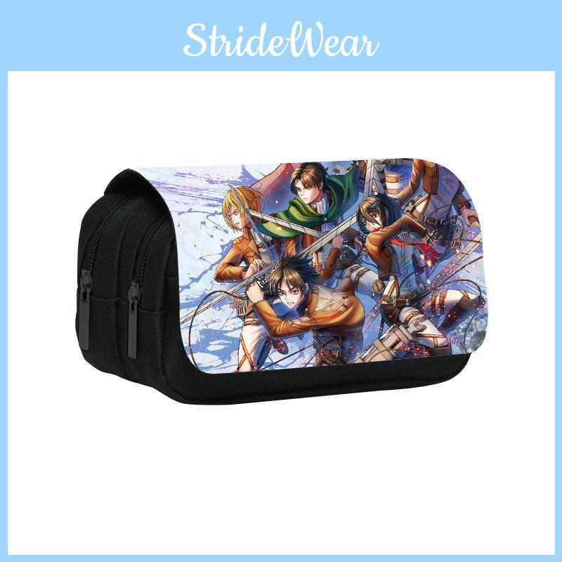 Attack On Titan Anime Pattern Student Double Layer Flip Cover Stationery Bag For School And Office