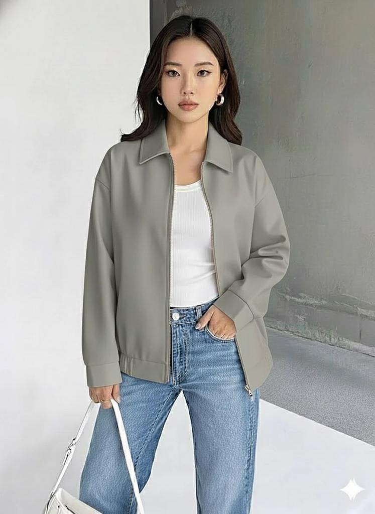 Leather Genuine Stylish Women's Bomber Gray Handmade Jacket Casual Lambskin Soft