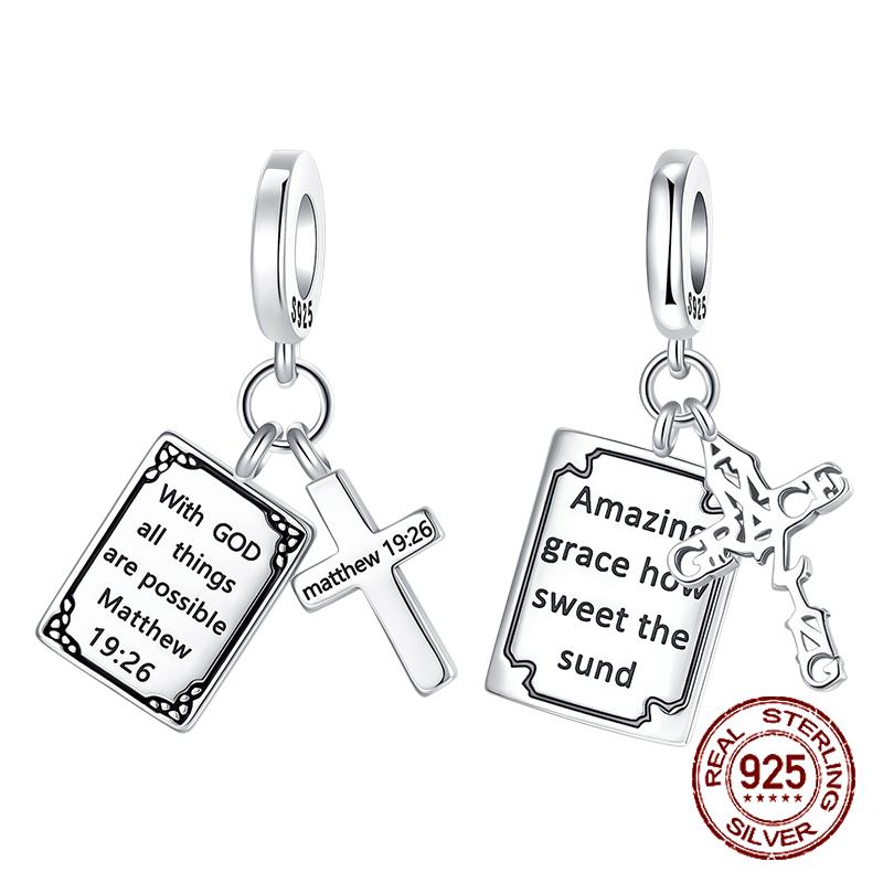 Copper Holy Bible Amazing Scriptures Cross Pendant Charm Fit Original Charm Bracelets Women Diy Jewelry Gift