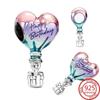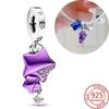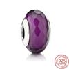 New Copper Purple Murano Bead Pansy Flower Dangle Charm Fit Original Brand Bracelet And Necklace Women Jewelry Gift