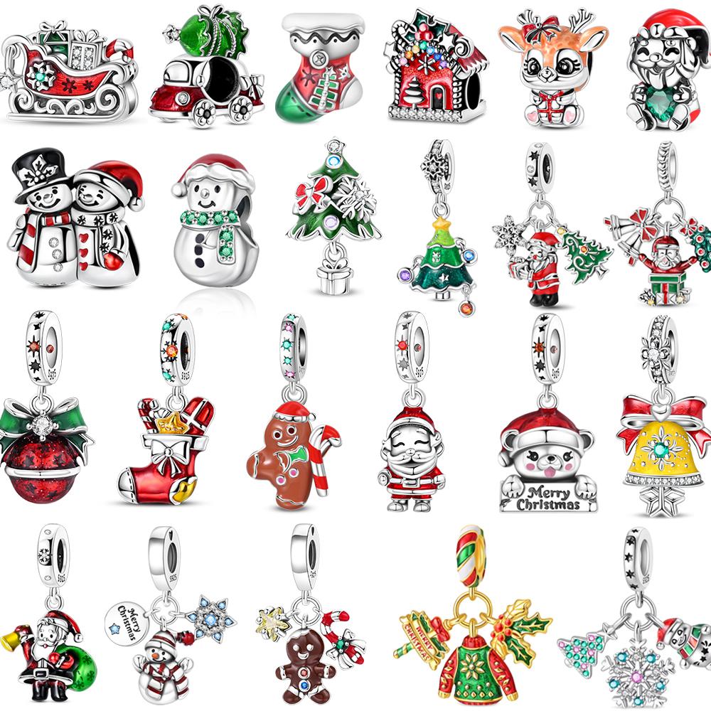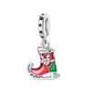 Romantic Copper Christmas Heart Bell & Santa Stocking Charm Fit Original Bracelet Accessories Diy Xmas Holiday Gift