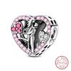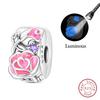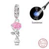 Copper Pink Love Series Charm Love Cube Little Bear Luminous Pendant Fit Original Bracelet Romantic Wedding Jewelry