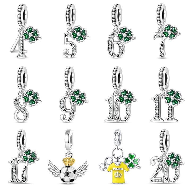 100% Copper Four Leaf Clover Lucky Numbers Soccer Charms Pendants Fit Qikaola Original Bracelets Fine Diy Jewelry