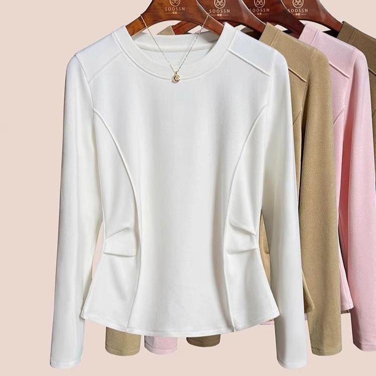 Women's Plus Size Base Shirt Round Neck Velvet Base Shirt Slim Fit Solid Color Stretch Long Sleeve T-Shirt