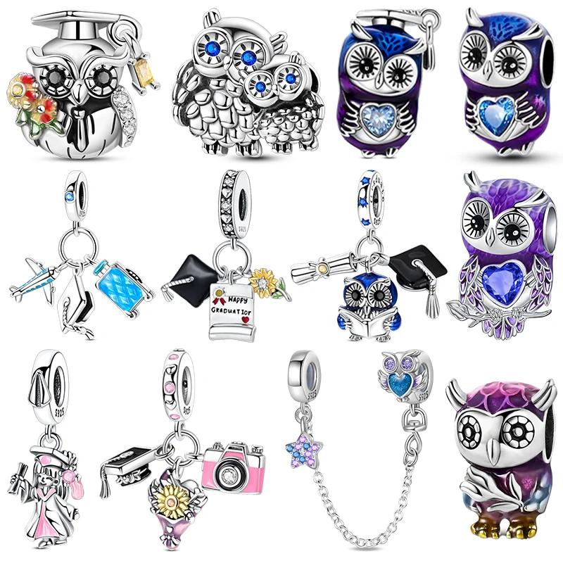Copper Owl Graduation Hat Charms Bead Girl Luggage Pendants Safety Chain Fit Bangle Bracelet Diy Jewelry Marking