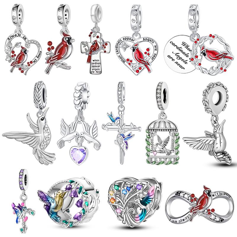 Copper Red Bird Dove Of Peace Love Cross Pendant Charms Fit Original Bracelet Beads Necklace Diy Jewelry
