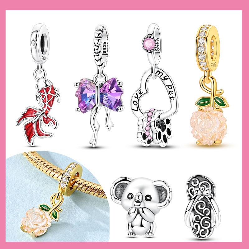 Copper Red Koi Luminous Rose,Koala Slippers Charms Beads Pendant For Original Bracelet Woman Girl Jewelry