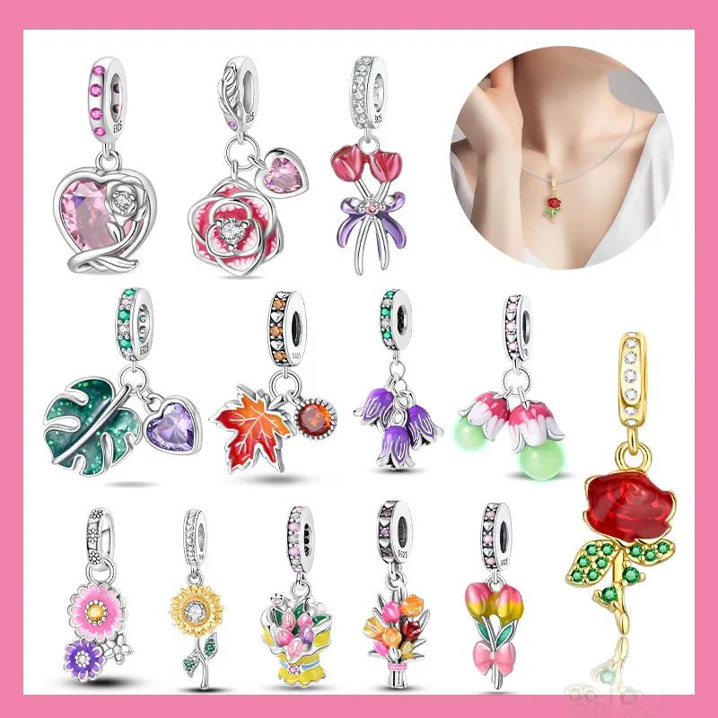 Fit Charms For Original Bracelets Diy Rose Daisy Tulip Charm Beads 100% Copper Jewelry Making Necklace For Women Gift