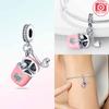 Original Pink Box Rocket Badminton Bike Beads Charms Fit Bracelet Copper Women Jewelry Necklace Diy Gift