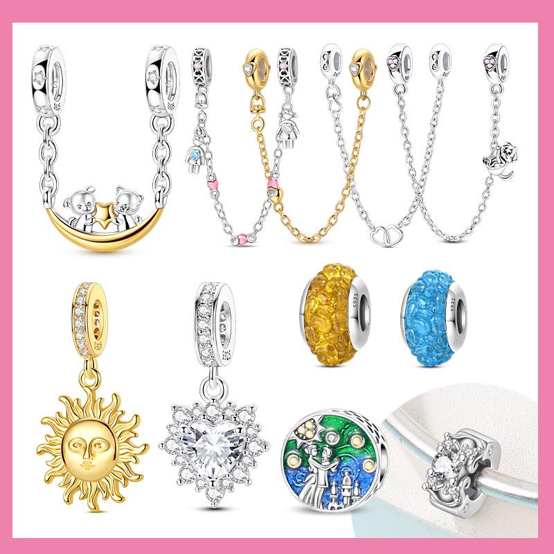 Copper Beads Pendant Couple Security Chain Golden Sun, Glass Beads Charm For Women Bracelet Engagement Jewelry Gift
