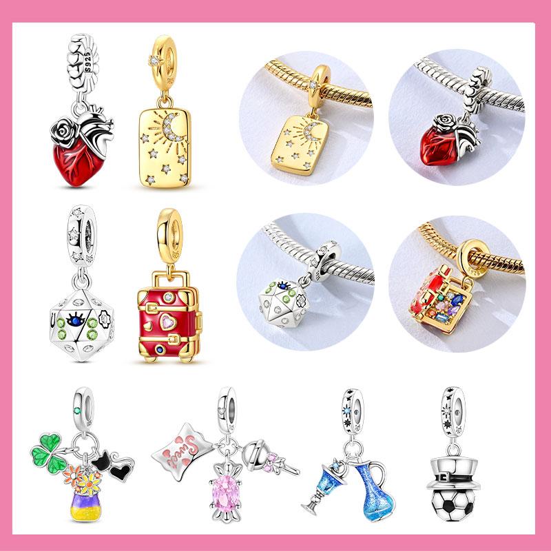 Copper Red Rose Heart Suitcase Oil Painting Vase Charms Beads Pendant For Original Bracelet Woman Girl Jewelry
