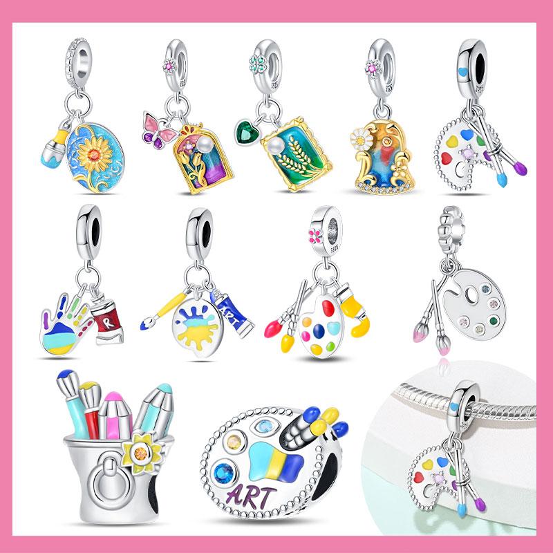 Copper Artist Brush Tools Color Palette Oil Painting Charms Girl Beads Fit Necklace Bracelets Diy Jewelry Gifts