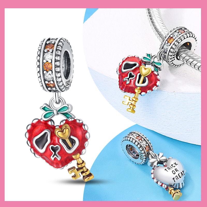 Copper Heart Skeleton Key Lock Beads New Halloween Series Diy Handmade Bracelet Birthday Gift Jewelry