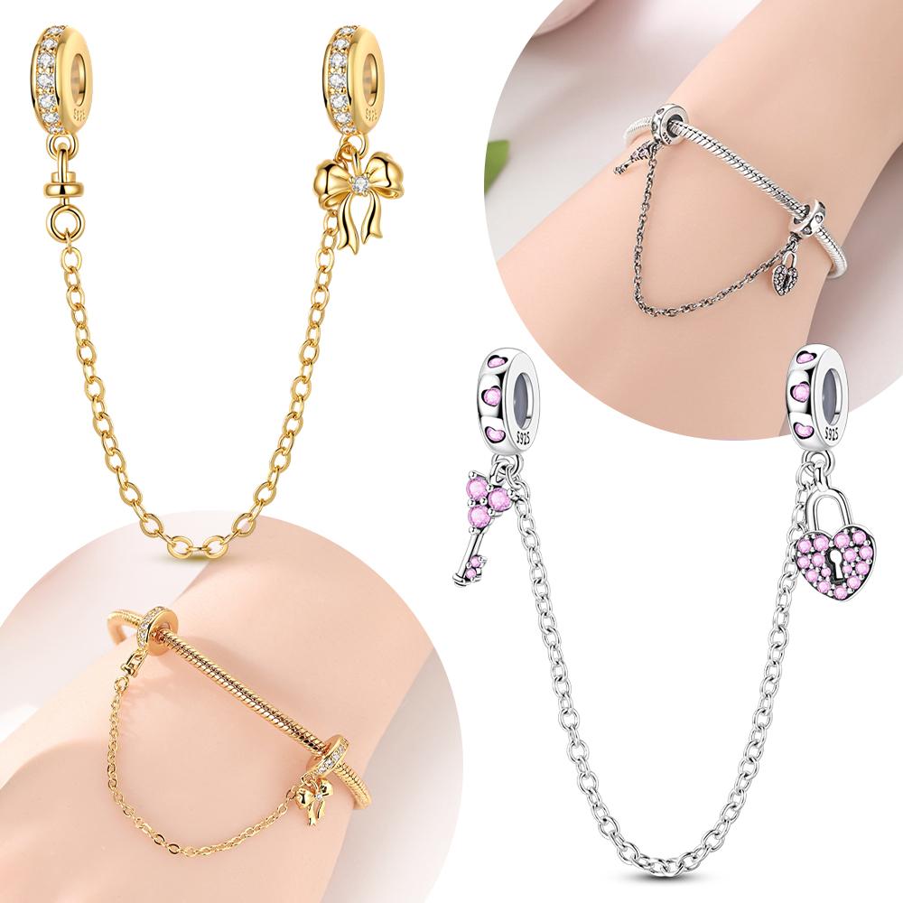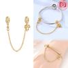 Pink Gemstone Golden Bow Tie Heart Original Copper Chain Bead Fit Bracelet Women Valentine'S Day Gift Jewelry Diy Accessory