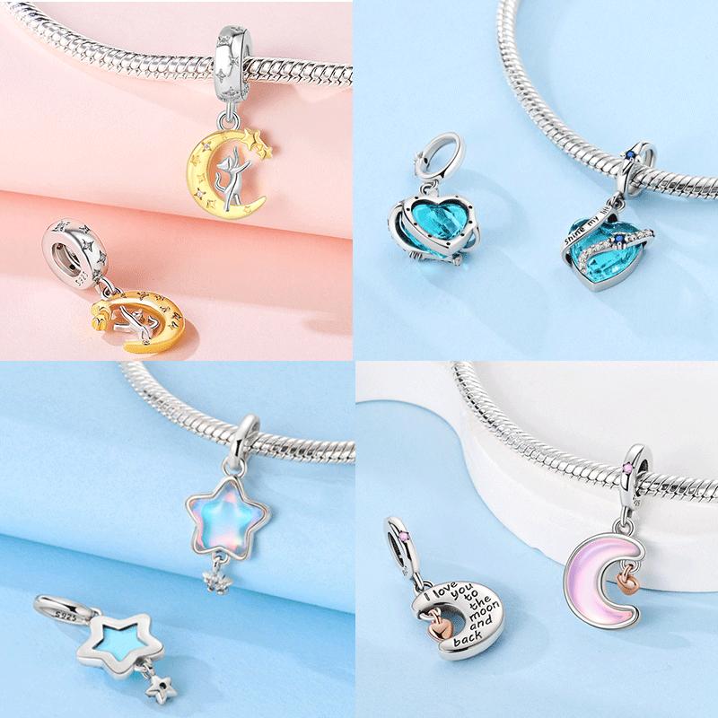 Original Copper Charms Pink Moon Cat Star Heart Love Zircon Beads Pendant Fit Diy Bracelet Necklace Women Jewelry Blue Gift