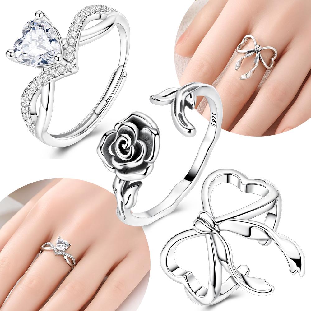 Original Copper Certified Rose Flower Ring White Heart Zircon Butterfly Knot Ring Women’S Valentine'S Day Gift Accessory