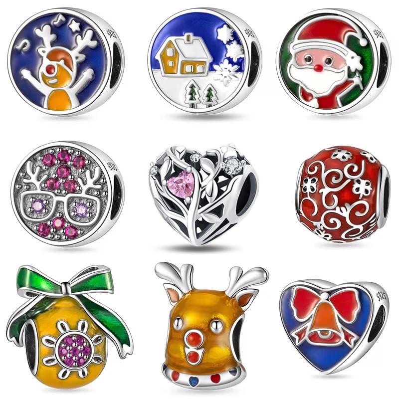 Original Charms Copper Love Heart Bow Tie Santa Claus Image Snowflake Beads Fit Bracelet Women Making Gift Accessory Diy