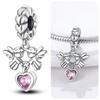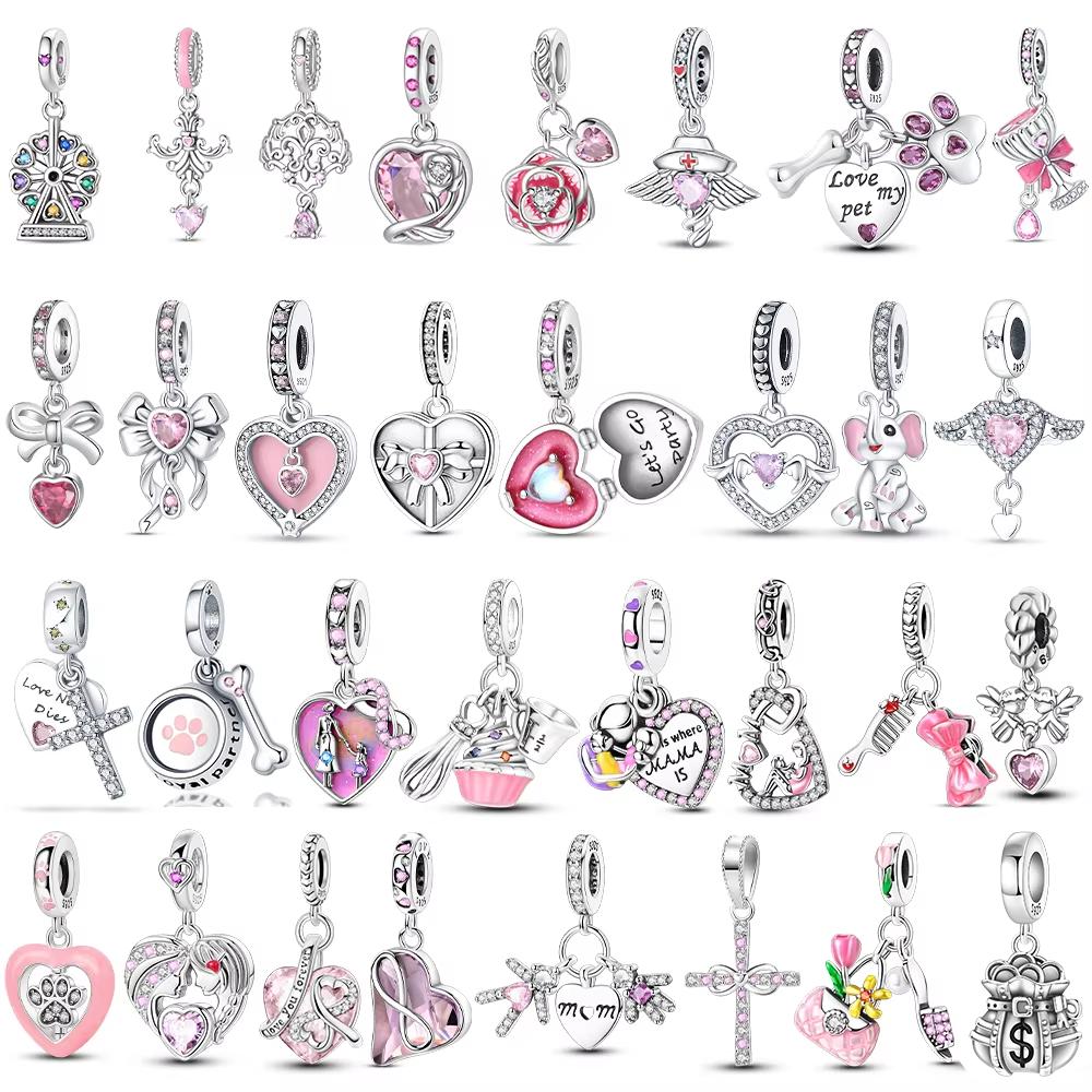Color Trunk Heart Shape Bow Pink Charms Beads Fit Original Bracelets Copper Fine Diy Birthday Women Jewelry Gift