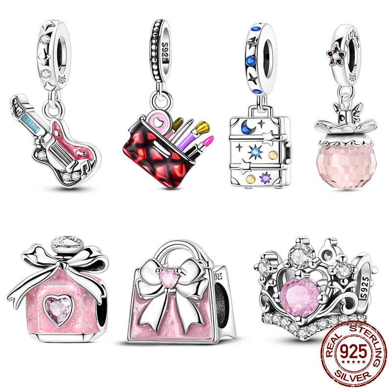 Copper Cosmetic Bag Guitar Perfume Bottle Charms Beads Fit Original Bracelet Diy Jewelry Party Gifts