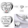 Copper Charms Love Mother Family Sister Heart Beads Fit Original Bracelet Diy Woman Jewelry Gift