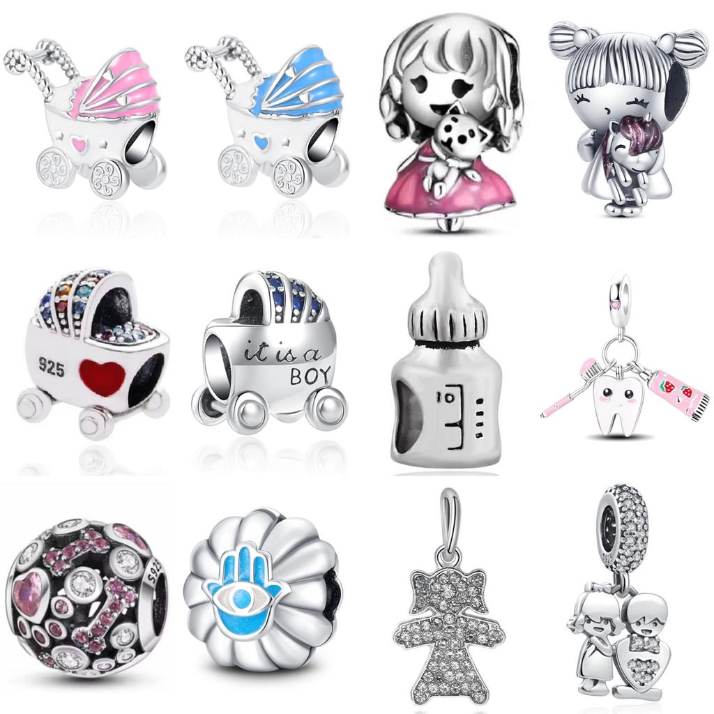 New Fashion Baby Series Baby Carriage Baby Bottle Girl Charm Bead Gift Fit Original Bracelet Pendant Diy Jewelry Accessories