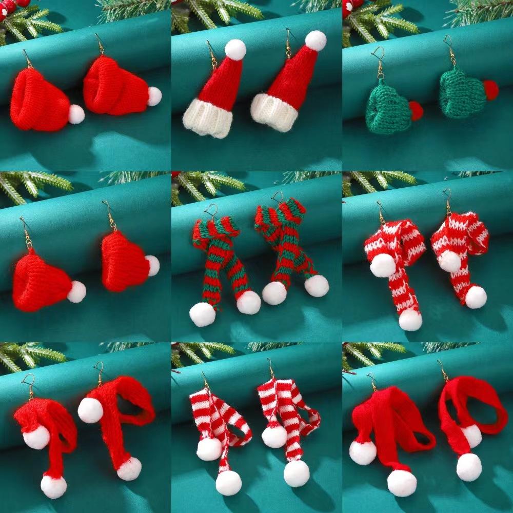 New Autumn and Winter Christmas Wind Knitted Wool Hat Scarf Earrings Girl Sweet Temperament Hairball Earrings