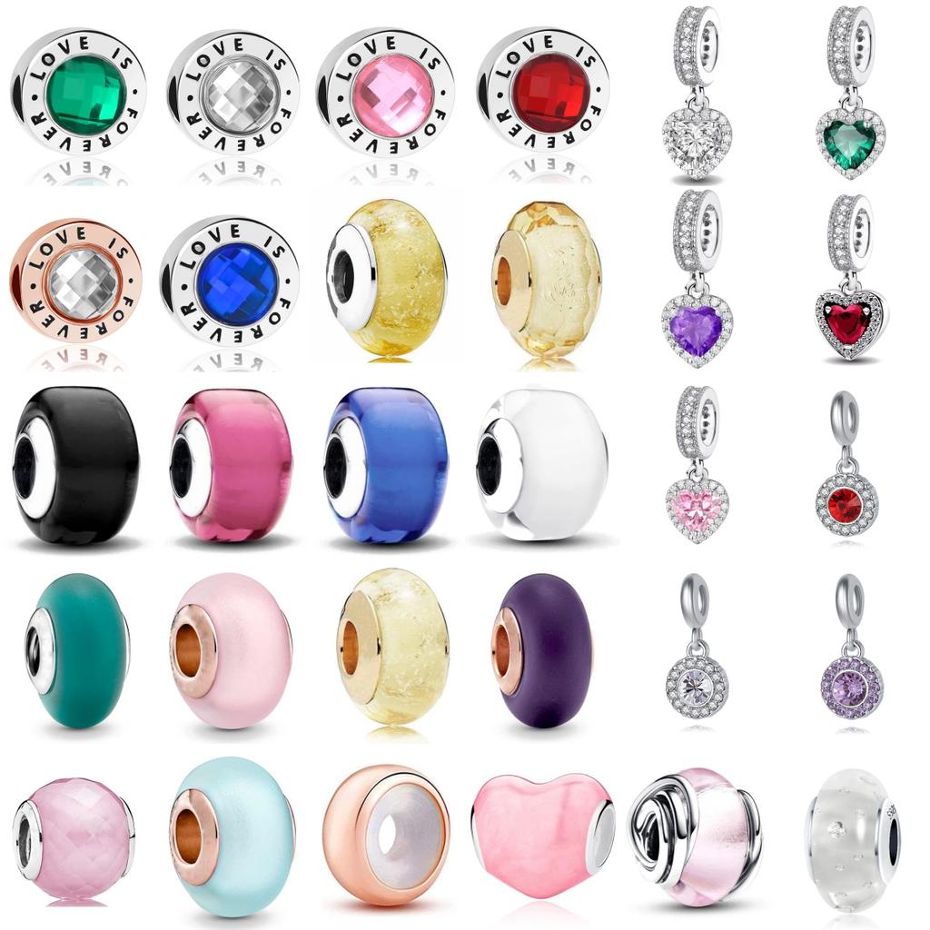 New Copper Plating Red Green Blue Colored Zircon Charms Fashion Pendant Fit Original Bracelets Diy Women Jewelry Gift